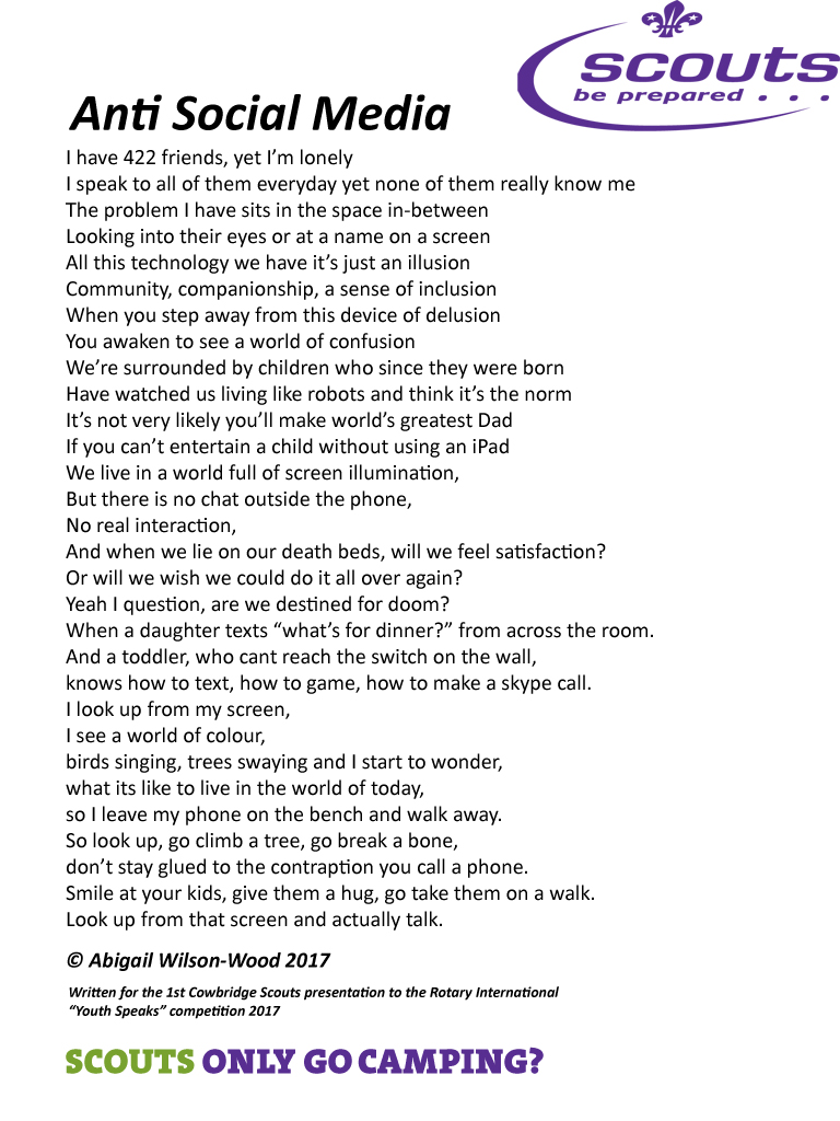 After successfully negotiating the Club and Area rounds, three of our Scouts took part today in the District Final of the Youth Speaks competition, sponsored by Rotary International.